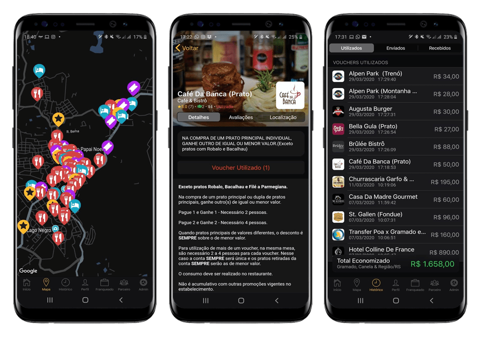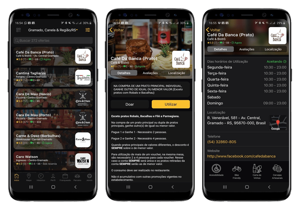 Você também pode ver os diferenciais, telefone, site, endereço e mapa dos estabelecimentos parceiros.