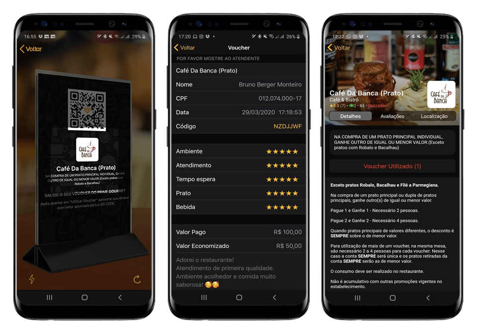Após validar o voucher, avalie o atendimento do estabelecimento parceiro.